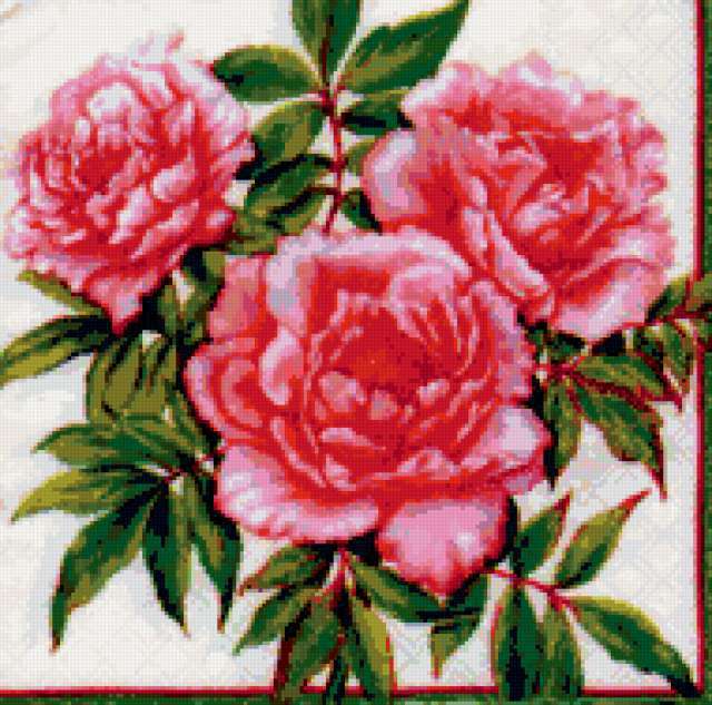 Ориентировочно так, схема вышивки «7267896», созданная автором irenidanna, будет выглядеть при отшиве на канве. Размер данной вышивки равен 190x188 крестов, при этом используется 53 цветов. Ключевые слова, по которым можно найти эту схему: подушка, цветы, розы. Также, вы можете взглянуть на оригинальную картинку, соответствующую данной схеме вышивки.