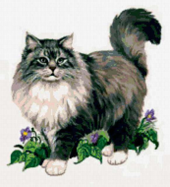 Ориентировочно так, схема вышивки «7835», созданная автором irenidanna, будет выглядеть при отшиве на канве. Размер данной вышивки равен 173x190 крестов, при этом используется 39 цветов. Ключевые слова, по которым можно найти эту схему: котик. Также, вы можете взглянуть на оригинальную картинку, соответствующую данной схеме вышивки.
