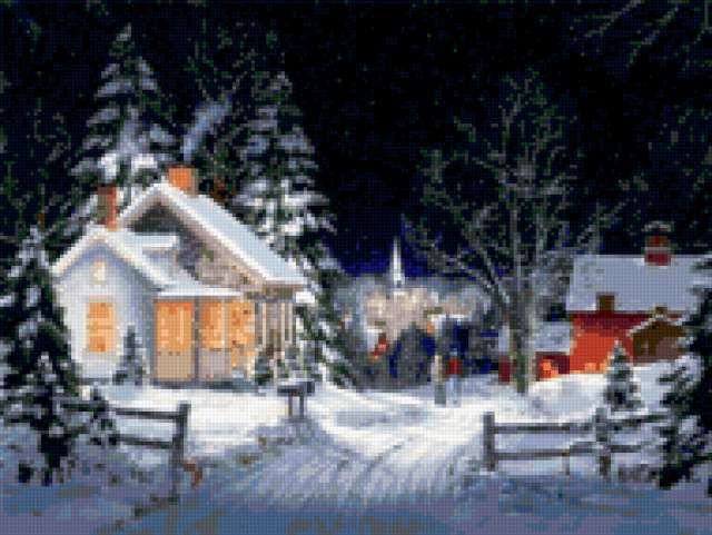Ориентировочно так, схема вышивки «801», созданная автором Valkiriya, будет выглядеть при отшиве на канве. Размер данной вышивки равен 190x143 крестов, при этом используется 69 цветов. Ключевые слова, по которым можно найти эту схему: зима, домик, люди, елка, пейзаж, природа, картина. Также, вы можете взглянуть на оригинальную картинку, соответствующую данной схеме вышивки.