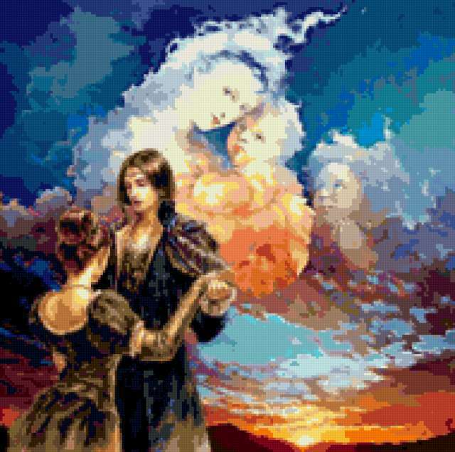 Ориентировочно так, схема вышивки «8489», созданная автором irenidanna, будет выглядеть при отшиве на канве. Размер данной вышивки равен 190x189 крестов, при этом используется 62 цветов. Ключевые слова, по которым можно найти эту схему: он и она, влюбленные, пара. Также, вы можете взглянуть на оригинальную картинку, соответствующую данной схеме вышивки.