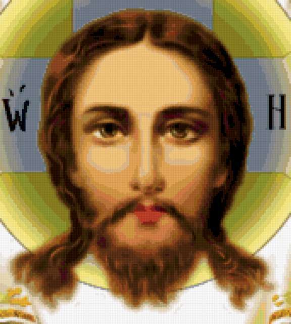 Ориентировочно так, схема вышивки «8492», созданная автором irenidanna, будет выглядеть при отшиве на канве. Размер данной вышивки равен 171x190 крестов, при этом используется 69 цветов. Ключевые слова, по которым можно найти эту схему: иисус, религия. Также, вы можете взглянуть на оригинальную картинку, соответствующую данной схеме вышивки.