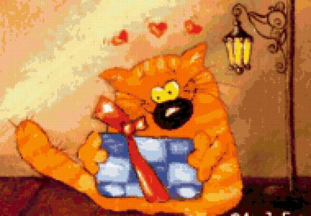 Ориентировочно так, схема вышивки «923», созданная автором Valkiriya, будет выглядеть при отшиве на канве. Размер данной вышивки равен 190x132 крестов, при этом используется 67 цветов. Ключевые слова, по которым можно найти эту схему: кот, кошка, живопись, картина. Также, вы можете взглянуть на оригинальную картинку, соответствующую данной схеме вышивки.