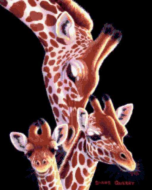Ориентировочно так, схема вышивки «A Mom», созданная автором iborissova, будет выглядеть при отшиве на канве. Размер данной вышивки равен 152x190 крестов, при этом используется 68 цветов. Ключевые слова, по которым можно найти эту схему: животны. Также, вы можете взглянуть на оригинальную картинку, соответствующую данной схеме вышивки.