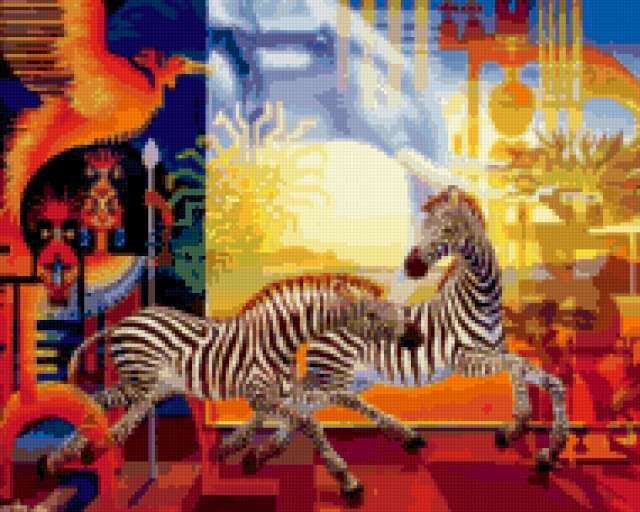 Ориентировочно так, схема вышивки «ART Ilene Meyer», созданная автором malkinaiv, будет выглядеть при отшиве на канве. Размер данной вышивки равен 190x152 крестов, при этом используется 81 цветов. Ключевые слова, по которым можно найти эту схему: искусство, живопись, картина, абстракция, животные, пейзаж, зебры. Также, вы можете взглянуть на оригинальную картинку, соответствующую данной схеме вышивки.