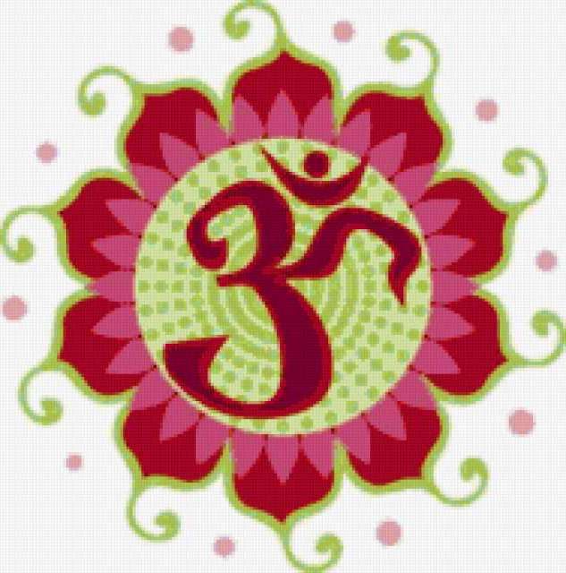 Ориентировочно так, схема вышивки «AUM3», созданная автором olenkap83, будет выглядеть при отшиве на канве. Размер данной вышивки равен 188x190 крестов, при этом используется 48 цветов. Ключевые слова, по которым можно найти эту схему: религия. Также, вы можете взглянуть на оригинальную картинку, соответствующую данной схеме вышивки.