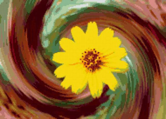 Ориентировочно так, схема вышивки «Abstract Flower», созданная автором pandreevska, будет выглядеть при отшиве на канве. Размер данной вышивки равен 190x137 крестов, при этом используется 55 цветов. Ключевые слова, по которым можно найти эту схему: цветок, абстракт. Также, вы можете взглянуть на оригинальную картинку, соответствующую данной схеме вышивки.