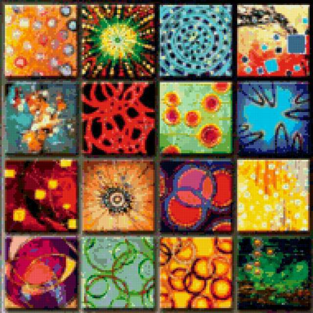 Ориентировочно так, схема вышивки «Abstract», созданная автором aniela, будет выглядеть при отшиве на канве. Размер данной вышивки равен 190x190 крестов, при этом используется 87 цветов. Ключевые слова, по которым можно найти эту схему: abstract. Также, вы можете взглянуть на оригинальную картинку, соответствующую данной схеме вышивки.