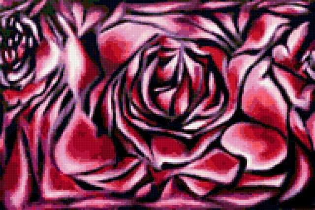 Ориентировочно так, схема вышивки «Abstract», созданная автором aniela, будет выглядеть при отшиве на канве. Размер данной вышивки равен 190x127 крестов, при этом используется 54 цветов. Ключевые слова, по которым можно найти эту схему: abstract. Также, вы можете взглянуть на оригинальную картинку, соответствующую данной схеме вышивки.