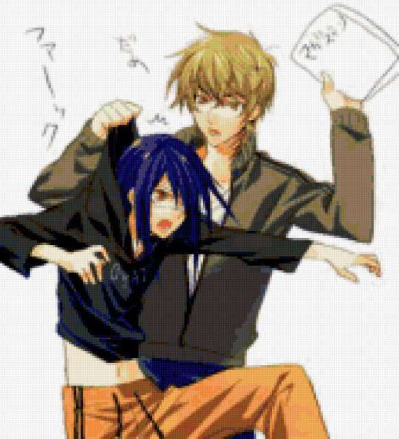 Ориентировочно так, схема вышивки «Air Gear», созданная автором Gurren, будет выглядеть при отшиве на канве. Размер данной вышивки равен 173x190 крестов, при этом используется 70 цветов. Ключевые слова, по которым можно найти эту схему: аниме парень. Также, вы можете взглянуть на оригинальную картинку, соответствующую данной схеме вышивки.