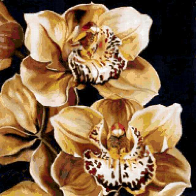 Ориентировочно так, схема вышивки «Alfred Ng», созданная автором malkinaiv, будет выглядеть при отшиве на канве. Размер данной вышивки равен 190x190 крестов, при этом используется 52 цветов. Ключевые слова, по которым можно найти эту схему: картина, цветы, орхидеи. Также, вы можете взглянуть на оригинальную картинку, соответствующую данной схеме вышивки.