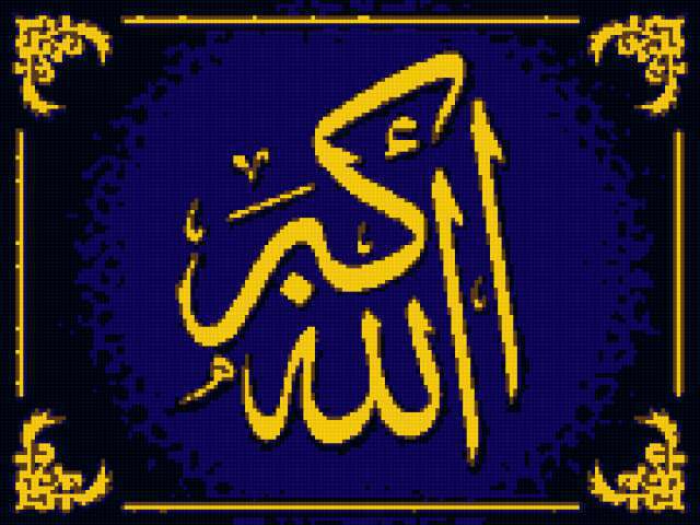 Ориентировочно так, схема вышивки «Allah», созданная автором selmanuran, будет выглядеть при отшиве на канве. Размер данной вышивки равен 180x135 крестов, при этом используется 5 цветов. К несчастью, автор не назначил для схемы ключевые слова. Также, вы можете взглянуть на оригинальную картинку, соответствующую данной схеме вышивки.