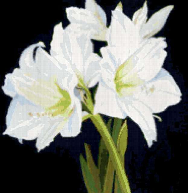 Ориентировочно так, схема вышивки «Amaryllis», созданная автором lukrecija12, будет выглядеть при отшиве на канве. Размер данной вышивки равен 185x190 крестов, при этом используется 36 цветов. Ключевые слова, по которым можно найти эту схему: flower. Также, вы можете взглянуть на оригинальную картинку, соответствующую данной схеме вышивки.