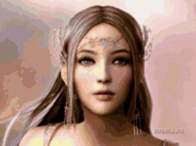Ориентировочно так, схема вышивки «Angel», созданная автором lukrecija12, будет выглядеть при отшиве на канве. Размер данной вышивки равен 190x142 крестов, при этом используется 45 цветов. Ключевые слова, по которым можно найти эту схему: zenshina, boginia. Также, вы можете взглянуть на оригинальную картинку, соответствующую данной схеме вышивки.