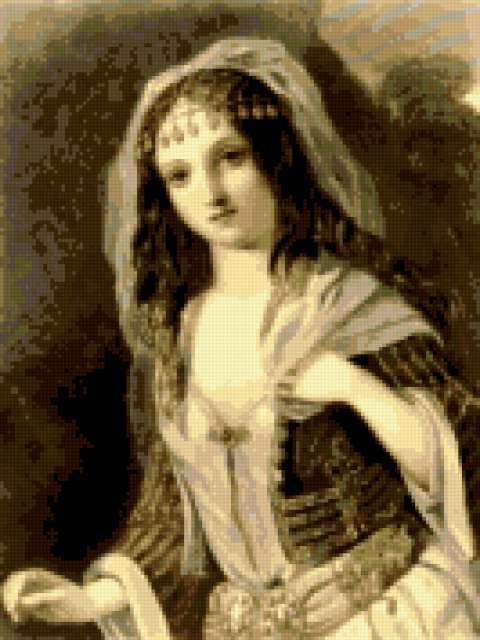 Ориентировочно так, схема вышивки «Aristokratka», созданная автором lukrecija12, будет выглядеть при отшиве на канве. Размер данной вышивки равен 133x177 крестов, при этом используется 31 цветов. Ключевые слова, по которым можно найти эту схему: zenshina, portret. Также, вы можете взглянуть на оригинальную картинку, соответствующую данной схеме вышивки.