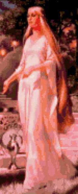 Ориентировочно так, схема вышивки «Aurora», созданная автором lukrecija12, будет выглядеть при отшиве на канве. Размер данной вышивки равен 75x186 крестов, при этом используется 48 цветов. Ключевые слова, по которым можно найти эту схему: zenshina, boginia. Также, вы можете взглянуть на оригинальную картинку, соответствующую данной схеме вышивки.