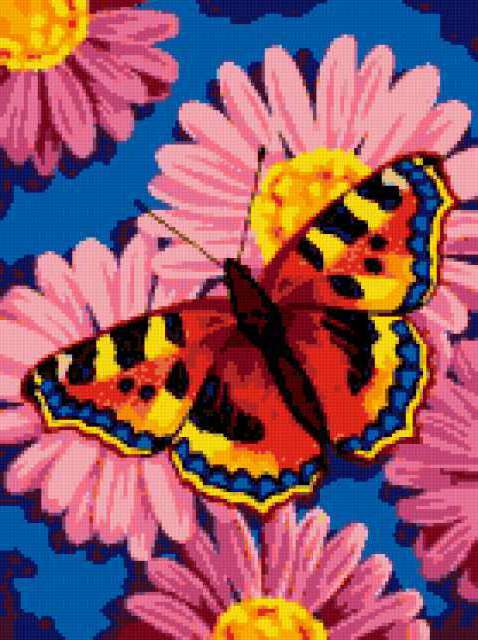 Ориентировочно так, схема вышивки «Babochka», созданная автором lukrecija12, будет выглядеть при отшиве на канве. Размер данной вышивки равен 139x186 крестов, при этом используется 32 цветов. Ключевые слова, по которым можно найти эту схему: babochka. Также, вы можете взглянуть на оригинальную картинку, соответствующую данной схеме вышивки.