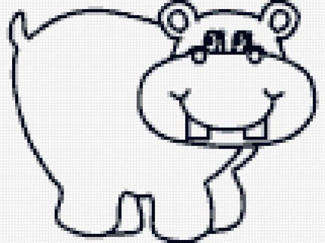 Ориентировочно так, схема вышивки «Begemot», созданная автором alkamena, будет выглядеть при отшиве на канве. Размер данной вышивки равен 107x80 крестов, при этом используется 5 цветов. Ключевые слова, по которым можно найти эту схему: рисунок, животное, контур. Также, вы можете взглянуть на оригинальную картинку, соответствующую данной схеме вышивки.