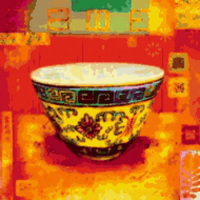 Ориентировочно так, схема вышивки «Beijing Bowl», созданная автором me4o, будет выглядеть при отшиве на канве. Размер данной вышивки равен 190x190 крестов, при этом используется 51 цветов. Ключевые слова, по которым можно найти эту схему: bowl, orient, colorful, decoration, beijing. Также, вы можете взглянуть на оригинальную картинку, соответствующую данной схеме вышивки.
