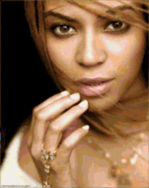 Ориентировочно так, схема вышивки «Beyonce.», созданная автором kakashka1987f, будет выглядеть при отшиве на канве. Размер данной вышивки равен 151x190 крестов, при этом используется 56 цветов. Ключевые слова, по которым можно найти эту схему: знаменитости. Также, вы можете взглянуть на оригинальную картинку, соответствующую данной схеме вышивки.