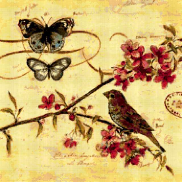 Ориентировочно так, схема вышивки «Bird Decoration», созданная автором pandreevska, будет выглядеть при отшиве на канве. Размер данной вышивки равен 190x190 крестов, при этом используется 55 цветов. Ключевые слова, по которым можно найти эту схему: bird, decoration, nature. Также, вы можете взглянуть на оригинальную картинку, соответствующую данной схеме вышивки.