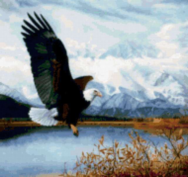 Ориентировочно так, схема вышивки «Bird», созданная автором aniela, будет выглядеть при отшиве на канве. Размер данной вышивки равен 190x179 крестов, при этом используется 65 цветов. Ключевые слова, по которым можно найти эту схему: wildlife, birds, птицы. Также, вы можете взглянуть на оригинальную картинку, соответствующую данной схеме вышивки.