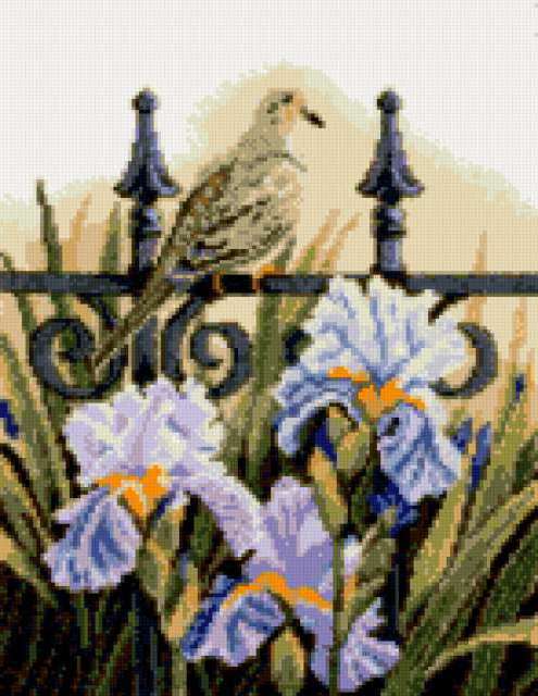 Ориентировочно так, схема вышивки «Birds and Flowers», созданная автором pandreevska, будет выглядеть при отшиве на канве. Размер данной вышивки равен 147x190 крестов, при этом используется 41 цветов. Ключевые слова, по которым можно найти эту схему: bird, bright, decoration, flowers, cross stitch. Также, вы можете взглянуть на оригинальную картинку, соответствующую данной схеме вышивки.