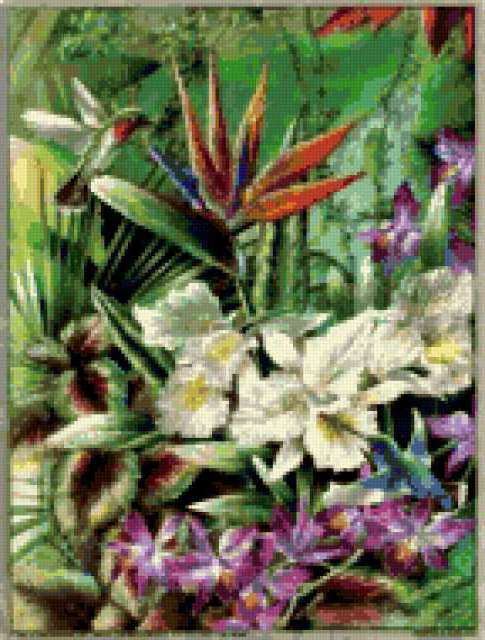 Ориентировочно так, схема вышивки «Birds», созданная автором aniela, будет выглядеть при отшиве на канве. Размер данной вышивки равен 144x190 крестов, при этом используется 85 цветов. Ключевые слова, по которым можно найти эту схему: wildlife, birds, птицы. Также, вы можете взглянуть на оригинальную картинку, соответствующую данной схеме вышивки.