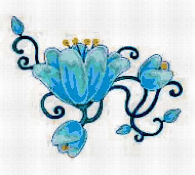 Ориентировочно так, схема вышивки «Blue flower», созданная автором lukrecija12, будет выглядеть при отшиве на канве. Размер данной вышивки равен 190x171 крестов, при этом используется 31 цветов. Ключевые слова, по которым можно найти эту схему: flower. Также, вы можете взглянуть на оригинальную картинку, соответствующую данной схеме вышивки.