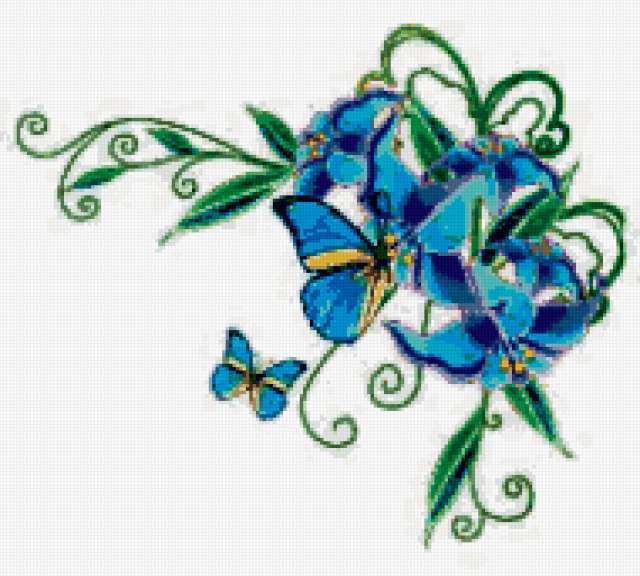 Ориентировочно так, схема вышивки «Blue flowers», созданная автором lukrecija12, будет выглядеть при отшиве на канве. Размер данной вышивки равен 190x171 крестов, при этом используется 46 цветов. Ключевые слова, по которым можно найти эту схему: flower. Также, вы можете взглянуть на оригинальную картинку, соответствующую данной схеме вышивки.