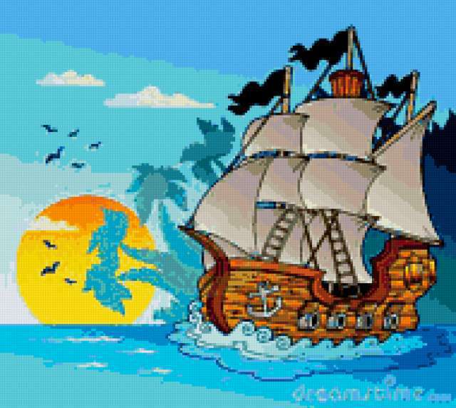 Ориентировочно так, схема вышивки «Boat», созданная автором aniela, будет выглядеть при отшиве на канве. Размер данной вышивки равен 190x170 крестов, при этом используется 62 цветов. Ключевые слова, по которым можно найти эту схему: seascape, пейзаж, boats, парусник. Также, вы можете взглянуть на оригинальную картинку, соответствующую данной схеме вышивки.