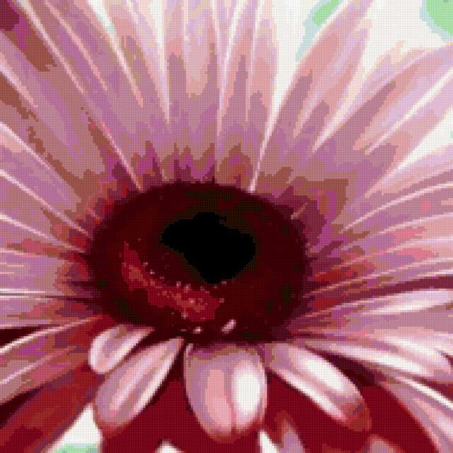 Ориентировочно так, схема вышивки «Bright Gerbera», созданная автором pandreevska, будет выглядеть при отшиве на канве. Размер данной вышивки равен 190x190 крестов, при этом используется 42 цветов. Ключевые слова, по которым можно найти эту схему: flower, decoration, bright. Также, вы можете взглянуть на оригинальную картинку, соответствующую данной схеме вышивки.