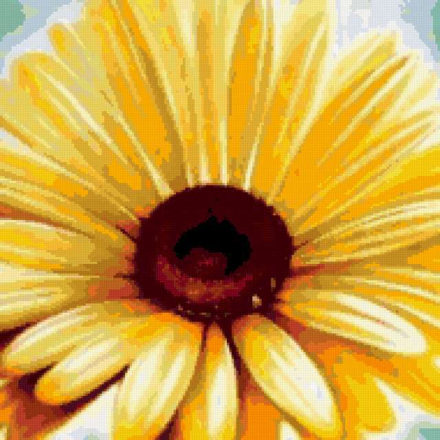 Ориентировочно так, схема вышивки «Bright Gerbera», созданная автором pandreevska, будет выглядеть при отшиве на канве. Размер данной вышивки равен 190x190 крестов, при этом используется 49 цветов. Ключевые слова, по которым можно найти эту схему: flower, decoration, bright. Также, вы можете взглянуть на оригинальную картинку, соответствующую данной схеме вышивки.