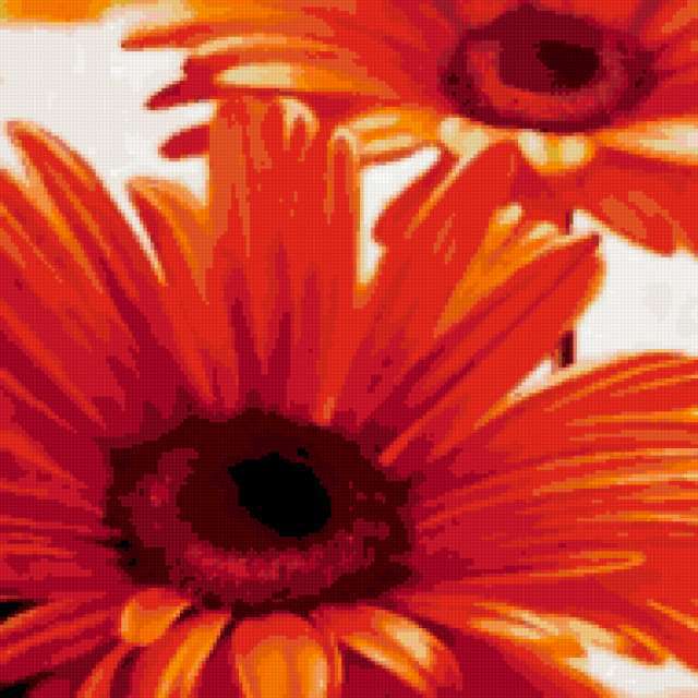 Ориентировочно так, схема вышивки «Bright Gerbera», созданная автором pandreevska, будет выглядеть при отшиве на канве. Размер данной вышивки равен 190x190 крестов, при этом используется 33 цветов. Ключевые слова, по которым можно найти эту схему: flower, decoration, bright. Также, вы можете взглянуть на оригинальную картинку, соответствующую данной схеме вышивки.