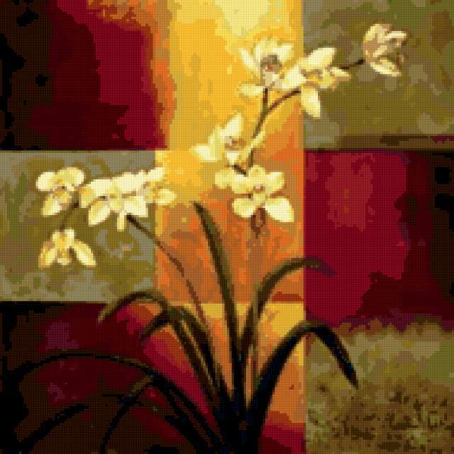 Ориентировочно так, схема вышивки «Bright Orchid», созданная автором me4o, будет выглядеть при отшиве на канве. Размер данной вышивки равен 190x190 крестов, при этом используется 38 цветов. Ключевые слова, по которым можно найти эту схему: orchid, bright, flowers, painting, delicacy, рисунок. Также, вы можете взглянуть на оригинальную картинку, соответствующую данной схеме вышивки.