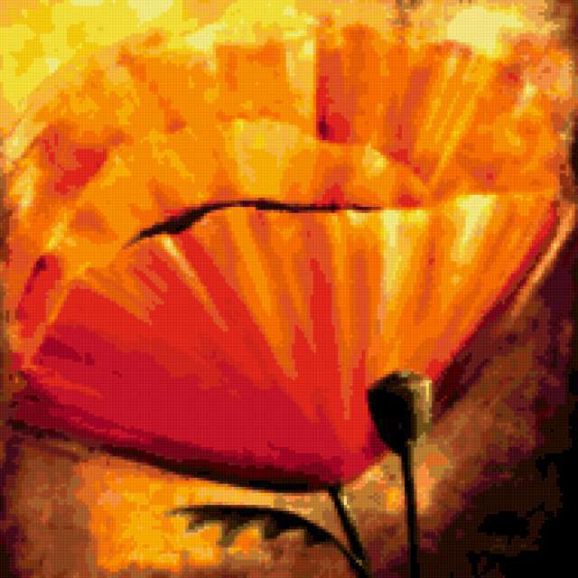 Ориентировочно так, схема вышивки «Bright Poppy», созданная автором pandreevska, будет выглядеть при отшиве на канве. Размер данной вышивки равен 190x190 крестов, при этом используется 40 цветов. Ключевые слова, по которым можно найти эту схему: flowers, decoration, bright, poppy. Также, вы можете взглянуть на оригинальную картинку, соответствующую данной схеме вышивки.