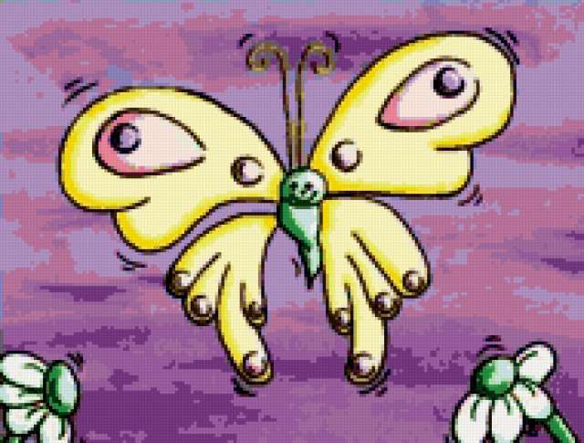 Ориентировочно так, схема вышивки «Butterflies - Set of 4 - Down R», созданная автором pandreevska, будет выглядеть при отшиве на канве. Размер данной вышивки равен 190x144 крестов, при этом используется 43 цветов. Ключевые слова, по которым можно найти эту схему: decoration, butterflies, bright, set of 4. Также, вы можете взглянуть на оригинальную картинку, соответствующую данной схеме вышивки.
