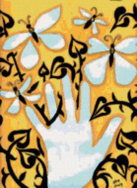 Ориентировочно так, схема вышивки «Butterfly», созданная автором aniela, будет выглядеть при отшиве на канве. Размер данной вышивки равен 139x190 крестов, при этом используется 60 цветов. Ключевые слова, по которым можно найти эту схему: wildlife, butterfly, бабочка. Также, вы можете взглянуть на оригинальную картинку, соответствующую данной схеме вышивки.