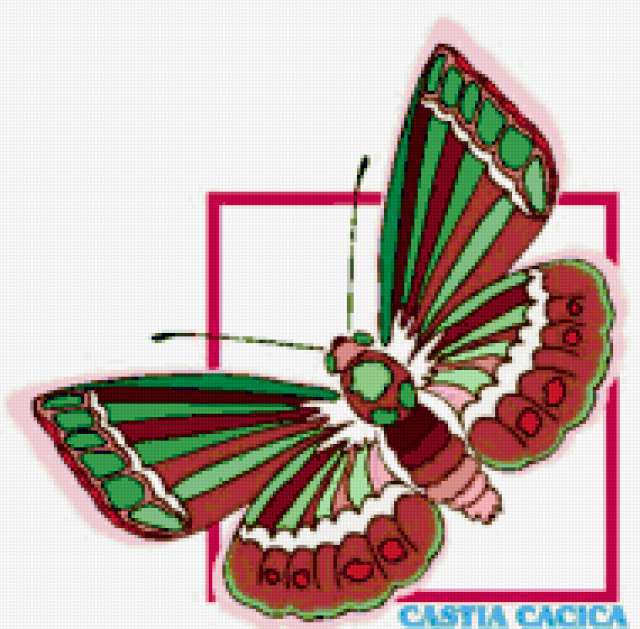 Ориентировочно так, схема вышивки «Butterfly», созданная автором aniela, будет выглядеть при отшиве на канве. Размер данной вышивки равен 190x187 крестов, при этом используется 69 цветов. Ключевые слова, по которым можно найти эту схему: wildlife, butterfly, бабочка. Также, вы можете взглянуть на оригинальную картинку, соответствующую данной схеме вышивки.