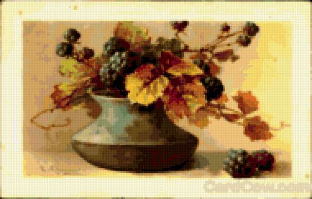 Ориентировочно так, схема вышивки «C. Klein», созданная автором AllaBira, будет выглядеть при отшиве на канве. Размер данной вышивки равен 190x122 крестов, при этом используется 72 цветов. Ключевые слова, по которым можно найти эту схему: vintage. Также, вы можете взглянуть на оригинальную картинку, соответствующую данной схеме вышивки.
