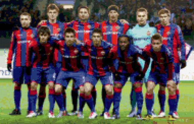 Ориентировочно так, схема вышивки «CSKA!!!», созданная автором polinushka, будет выглядеть при отшиве на канве. Размер данной вышивки равен 190x122 крестов, при этом используется 79 цветов. К несчастью, автор не назначил для схемы ключевые слова. Также, вы можете взглянуть на оригинальную картинку, соответствующую данной схеме вышивки.