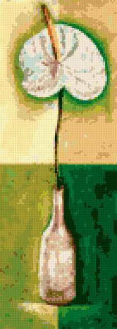 Ориентировочно так, схема вышивки «Calla», созданная автором lukrecija12, будет выглядеть при отшиве на канве. Размер данной вышивки равен 68x190 крестов, при этом используется 27 цветов. Ключевые слова, по которым можно найти эту схему: flower. Также, вы можете взглянуть на оригинальную картинку, соответствующую данной схеме вышивки.