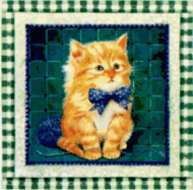 Ориентировочно так, схема вышивки «Cat», созданная автором aniela, будет выглядеть при отшиве на канве. Размер данной вышивки равен 190x187 крестов, при этом используется 66 цветов. Ключевые слова, по которым можно найти эту схему: животные, pets, animals, кошка. Также, вы можете взглянуть на оригинальную картинку, соответствующую данной схеме вышивки.