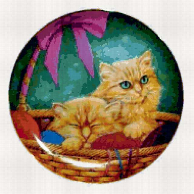 Ориентировочно так, схема вышивки «Cats», созданная автором aniela, будет выглядеть при отшиве на канве. Размер данной вышивки равен 190x190 крестов, при этом используется 73 цветов. Ключевые слова, по которым можно найти эту схему: животные, pets, animals, кошка. Также, вы можете взглянуть на оригинальную картинку, соответствующую данной схеме вышивки.