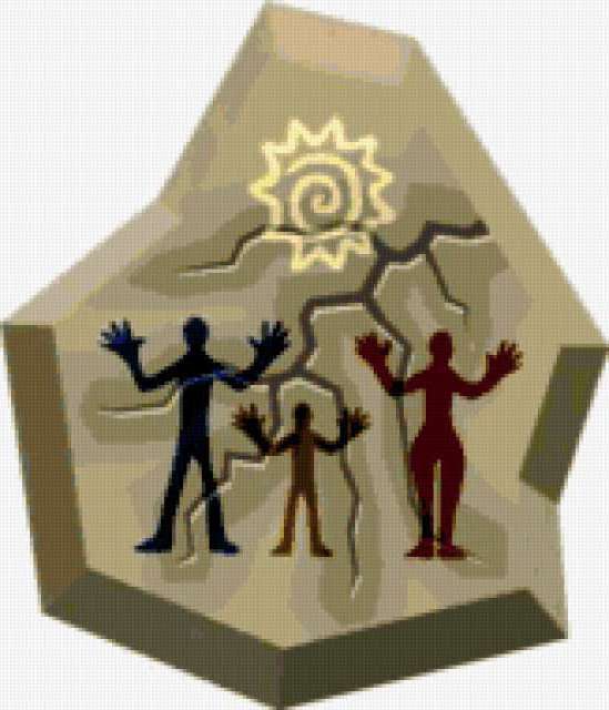 Ориентировочно так, схема вышивки «Caveart», созданная автором aniela, будет выглядеть при отшиве на канве. Размер данной вышивки равен 163x190 крестов, при этом используется 63 цветов. Ключевые слова, по которым можно найти эту схему: caveart. Также, вы можете взглянуть на оригинальную картинку, соответствующую данной схеме вышивки.