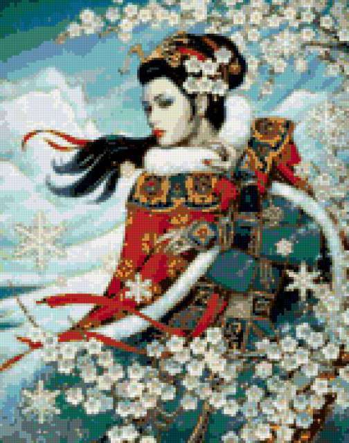 Ориентировочно так, схема вышивки «Chainese beauty», созданная автором tasnim, будет выглядеть при отшиве на канве. Размер данной вышивки равен 145x184 крестов, при этом используется 47 цветов. Ключевые слова, по которым можно найти эту схему: peintings. Также, вы можете взглянуть на оригинальную картинку, соответствующую данной схеме вышивки.