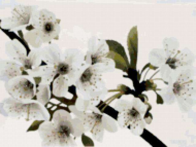Ориентировочно так, схема вышивки «Cherry blossoms», созданная автором aniela, будет выглядеть при отшиве на канве. Размер данной вышивки равен 190x143 крестов, при этом используется 55 цветов. Ключевые слова, по которым можно найти эту схему: tree. Также, вы можете взглянуть на оригинальную картинку, соответствующую данной схеме вышивки.