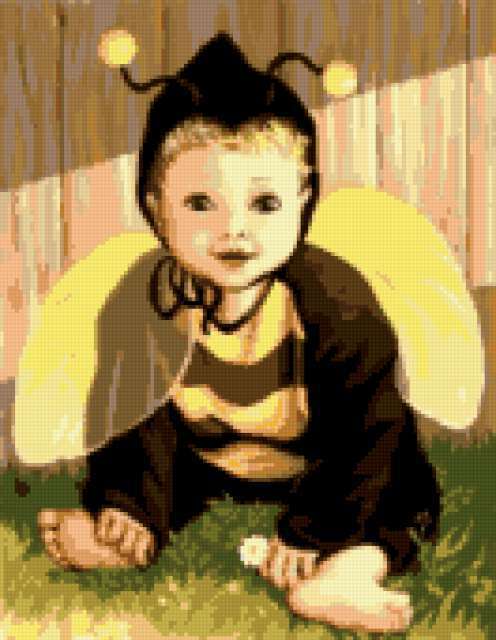 Ориентировочно так, схема вышивки «Child», созданная автором poltanya, будет выглядеть при отшиве на канве. Размер данной вышивки равен 132x170 крестов, при этом используется 29 цветов. Ключевые слова, по которым можно найти эту схему: kids, children, child. Также, вы можете взглянуть на оригинальную картинку, соответствующую данной схеме вышивки.