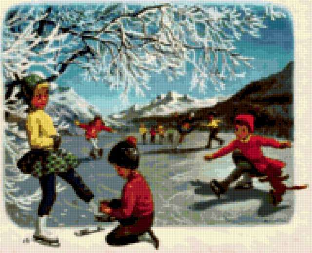 Ориентировочно так, схема вышивки «Children», созданная автором aniela, будет выглядеть при отшиве на канве. Размер данной вышивки равен 190x154 крестов, при этом используется 78 цветов. Ключевые слова, по которым можно найти эту схему: children, дети. Также, вы можете взглянуть на оригинальную картинку, соответствующую данной схеме вышивки.