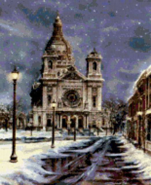 Ориентировочно так, схема вышивки «Cityscape», созданная автором aniela, будет выглядеть при отшиве на канве. Размер данной вышивки равен 155x190 крестов, при этом используется 69 цветов. Ключевые слова, по которым можно найти эту схему: пейзаж, архитэктура, cityscape, город. Также, вы можете взглянуть на оригинальную картинку, соответствующую данной схеме вышивки.