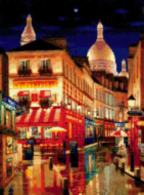 Ориентировочно так, схема вышивки «Cityscape», созданная автором aniela, будет выглядеть при отшиве на канве. Размер данной вышивки равен 141x190 крестов, при этом используется 78 цветов. Ключевые слова, по которым можно найти эту схему: пейзаж, архитэктура, cityscape, город. Также, вы можете взглянуть на оригинальную картинку, соответствующую данной схеме вышивки.